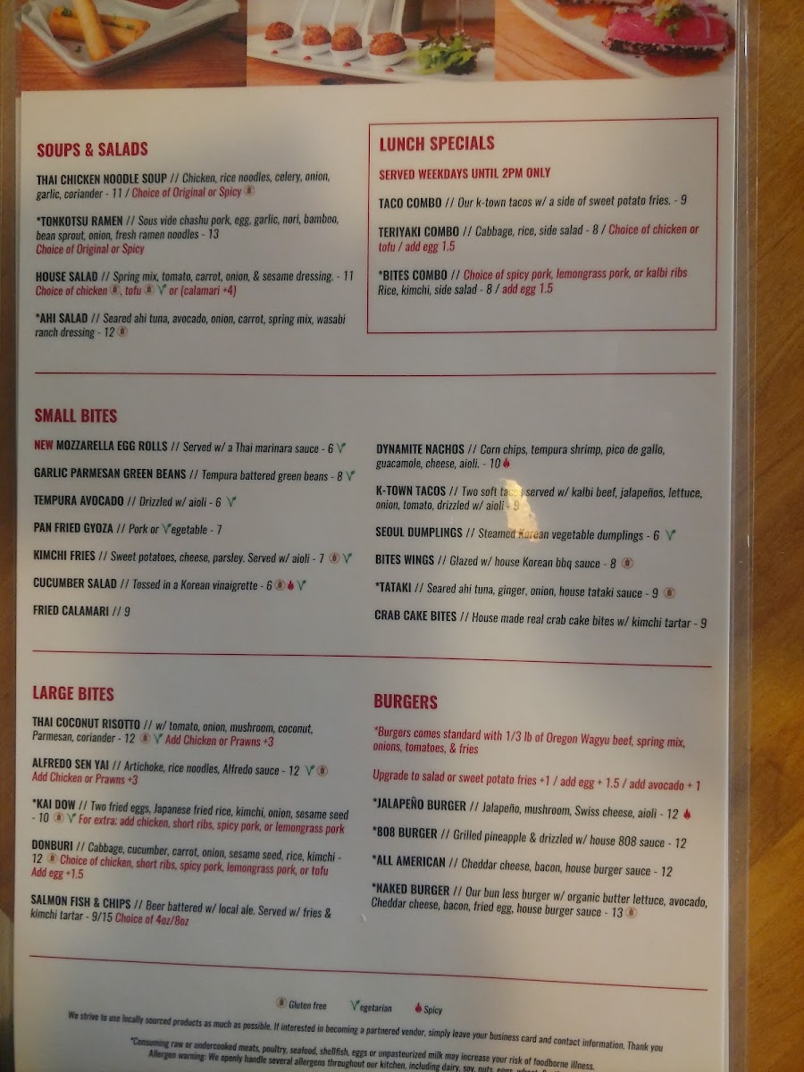 cabbage, rice, kimchi, side salad / choice of chicken, short ribs, spicy pork / add egg $1.50